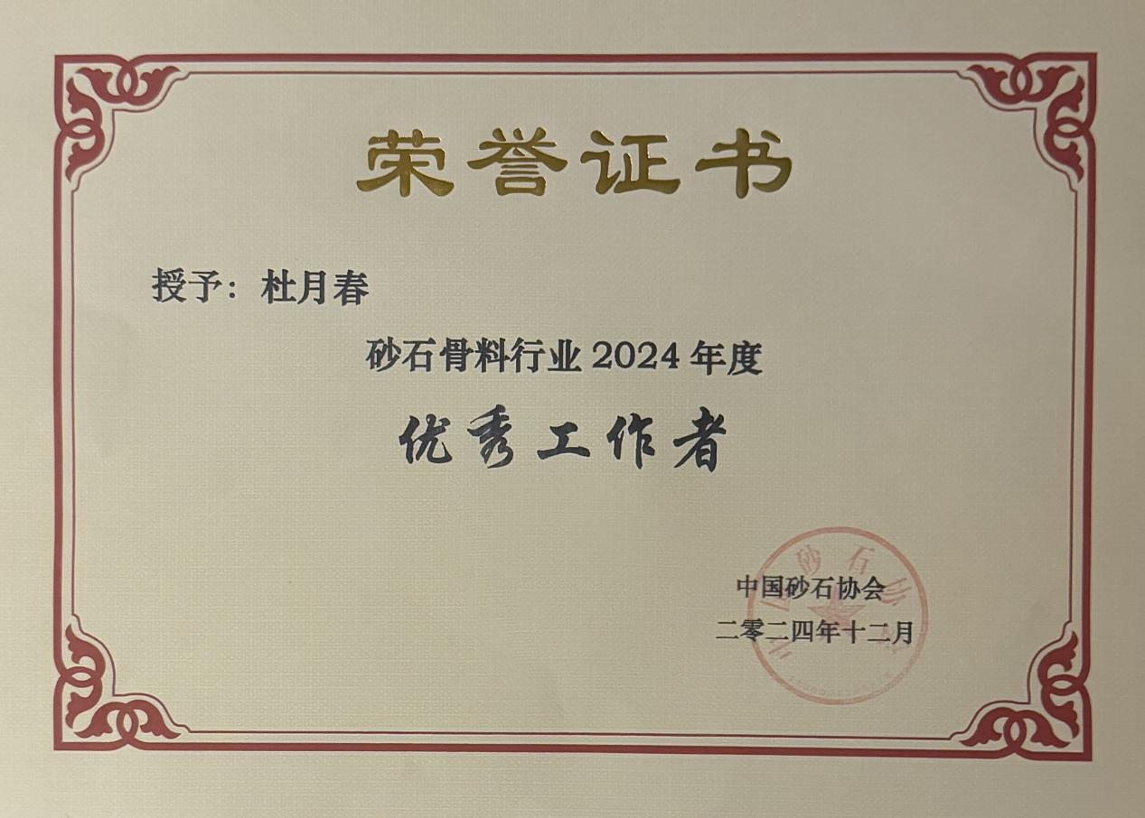 公司副總杜月春被評(píng)為“砂石骨料行業(yè)優(yōu)秀工作者”