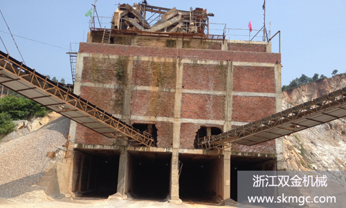 涼嶺采石場地處黃岡市黃梅縣,與安徽省安慶市交界,該石料廠主要生產(chǎn)風化巖石灰石,日產(chǎn)量在3000噸左右,在黃梅縣是最大的礦山企業(yè),設(shè)備組成是一臺鄂破900*1200,四臺鄂破250*1200,一臺1315反擊破。碎石生產(chǎn)線特點,根據(jù)生產(chǎn)線場地的階梯式地形,礦山老板設(shè)計了一個成品料卸料庫,運輸車可以直接倒進卸料庫進行裝料,帶來的直接是裝車成本的節(jié)?。ㄆ骄b載車是1元/噸),另外在環(huán)保也得到了控制。