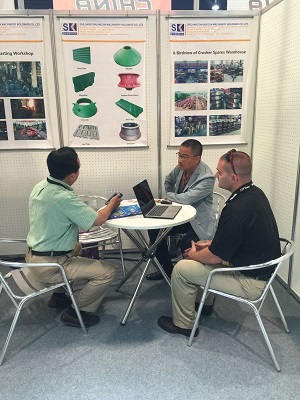雙金公司作為國內(nèi)破碎機(jī)行業(yè)的知名企業(yè),在國內(nèi)市場(chǎng)上已經(jīng)占據(jù)了重要的行業(yè)地位,而在海外市場(chǎng)卻處于默默無聞的狀況,此次亮相美國拉斯維加斯國際礦業(yè)展,雙金公司以“super technical,super service”的宗旨為海外客戶帶去高可靠性的產(chǎn)品。此次展會(huì)上,雙金機(jī)械展示了公司主打的SJ系列圓錐破碎機(jī)、液壓圓錐破碎機(jī)以及多種規(guī)格的破碎機(jī)配件,吸引了來自多國采購商在公司展臺(tái)索取資料和業(yè)務(wù)洽談,為進(jìn)一步拓展海外市場(chǎng)和擴(kuò)大破碎篩分設(shè)備的出口起到了積極的作用。期間,中國貿(mào)易促進(jìn)會(huì)機(jī)械分會(huì)副會(huì)長(zhǎng)和主任也來到公司的展臺(tái)與公司海外事業(yè)部總經(jīng)理胡建華進(jìn)行了簡(jiǎn)短的交流。