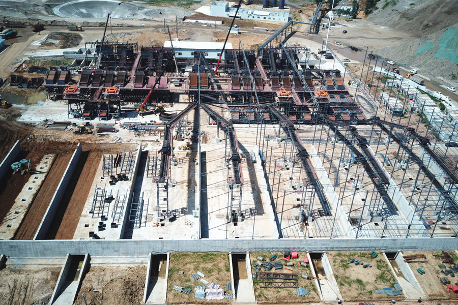 該客戶在四川瀘州,處理物料為鵝卵石、玄武巖,產量4000噸/小時,可以說是當前國內超大規(guī)模的砂石生產線。產量大、涉及到的安裝、生產等工藝復雜,關鍵是工期非常緊張。雙金集團