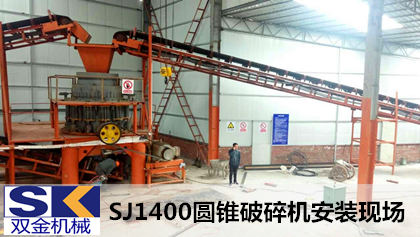 (SJ1400圓錐破碎機安裝現(xiàn)場)