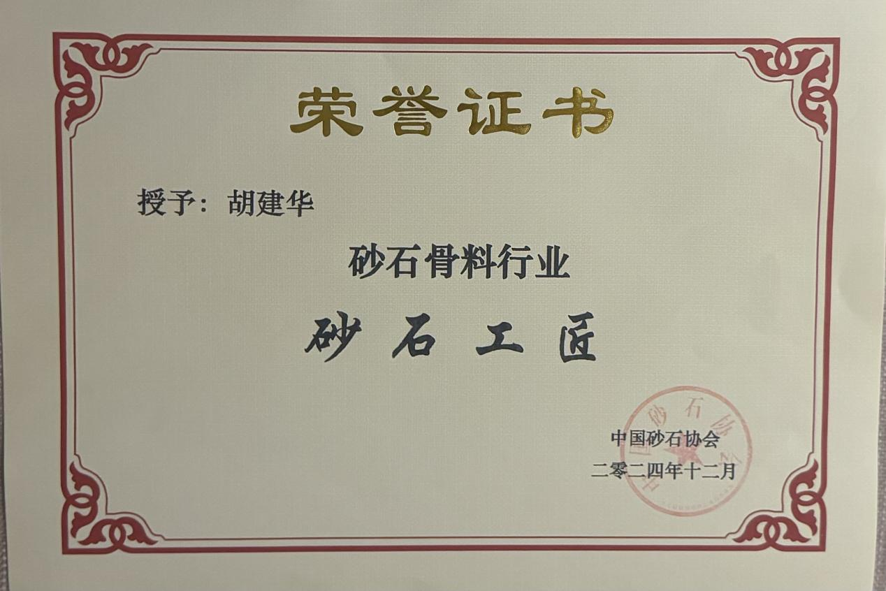 公司總經(jīng)理胡建華被評(píng)為“砂石骨料行業(yè)砂石工匠”