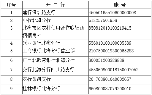 開(kāi)戶(hù)行及賬號(hào)列表:
