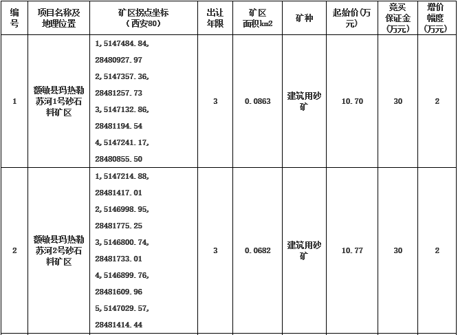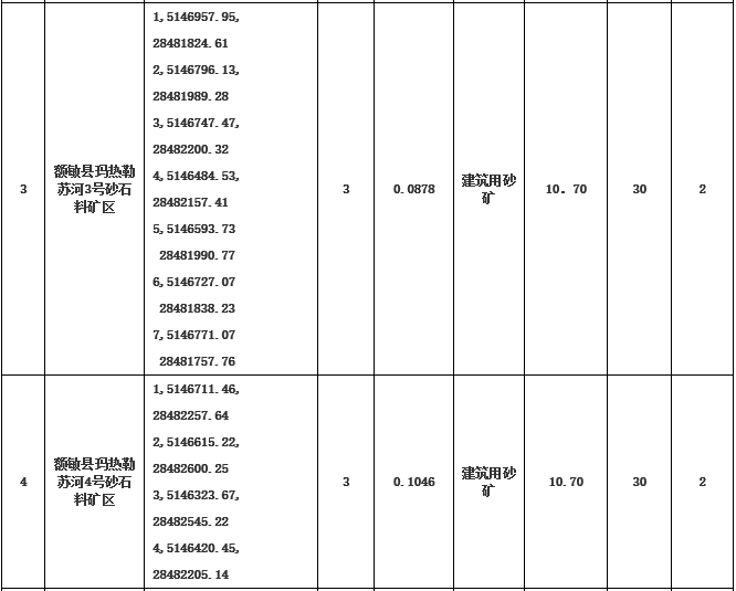 注:最終成交的采礦權(quán)范圍拐點坐標以與額敏縣國土資源局簽訂出讓合同中確定的采礦權(quán)范圍拐點坐標為準。