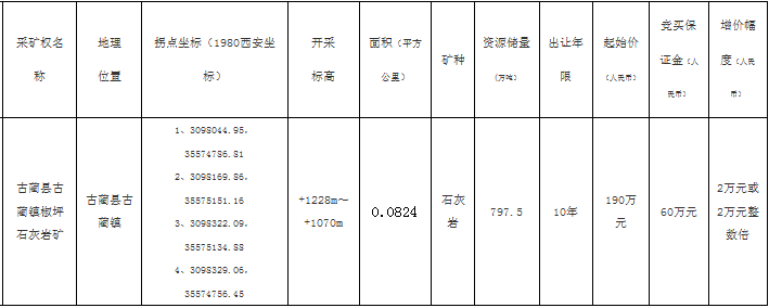 本宗采礦權(quán)采用無底價增價方式拍賣出讓,價高者得。