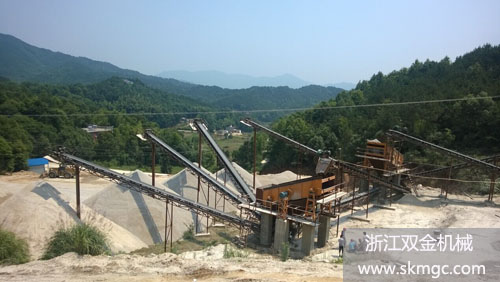 此生產(chǎn)線于2014年4月施工建設(shè),6月初正式生產(chǎn),頭破采用江蘇的870x1060顎式破碎機,其中二破使用的是雙金公司SJ1650圓錐破碎機,后面跟兩道篩分,出五種建筑用料2-4,1-3,1-2,瓜子片和石粉,這樣的生產(chǎn)線配置產(chǎn)量能達到在每小時200噸左右。由于當?shù)厮懖槐?,只能陸運,所以石料幾乎都是銷售在太湖縣及縣城周邊,因此他這里的石料價格也不算高。如需要了解詳細情況,可以聯(lián)系浙江雙金機械客服400-006-1987。