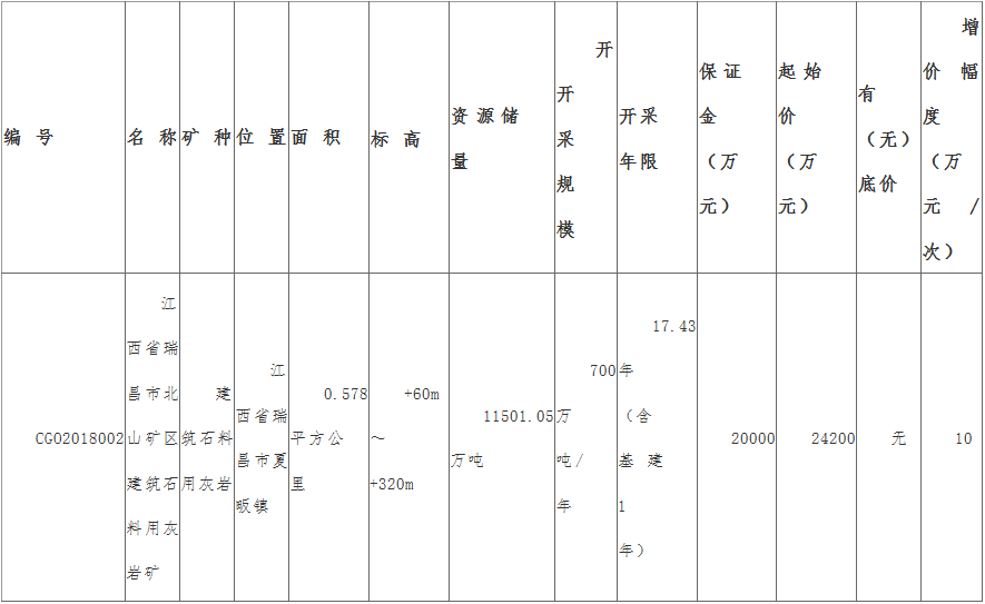 根據(jù)《江西省土地使用權(quán)和礦業(yè)權(quán)統(tǒng)一網(wǎng)上交易管理辦法》等有關(guān)規(guī)定,受瑞昌市地質(zhì)礦產(chǎn)局委托,瑞昌市礦產(chǎn)資源儲(chǔ)備交易中心以網(wǎng)上掛牌方式出讓下列礦業(yè)權(quán)。