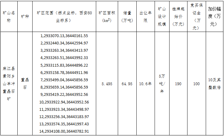 經州人民政府同意,由黔東南州國土資源局委托黔東南州公共資源交易中心公開掛牌出讓以下采礦權?,F將有關事項公告如下: