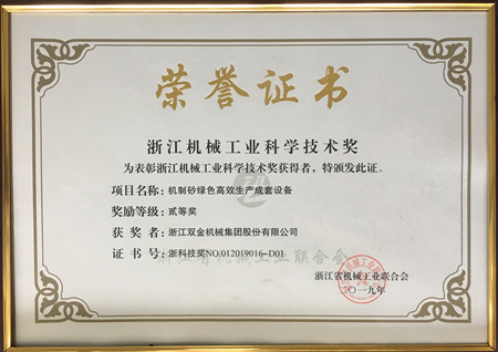 近日,浙江省機(jī)械工業(yè)聯(lián)合會公布了2019年度浙江機(jī)械工業(yè)科學(xué)技術(shù)獎。由浙江雙金機(jī)械集團(tuán)股份有限公司自主申報的《機(jī)制砂綠色高效生產(chǎn)成套設(shè)備》項(xiàng)目榮獲二等獎。標(biāo)志著公司技術(shù)研發(fā)、產(chǎn)品創(chuàng)新取得了重要成果。
