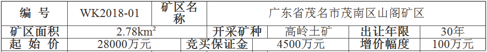 1.為切實(shí)落實(shí)茂名市政府做大做強(qiáng)做優(yōu)高嶺土產(chǎn)業(yè)的戰(zhàn)略規(guī)劃,競買人或競買人控股股東或競買人的母公司須具有從事高嶺土采選10年以上的專業(yè)經(jīng)歷。