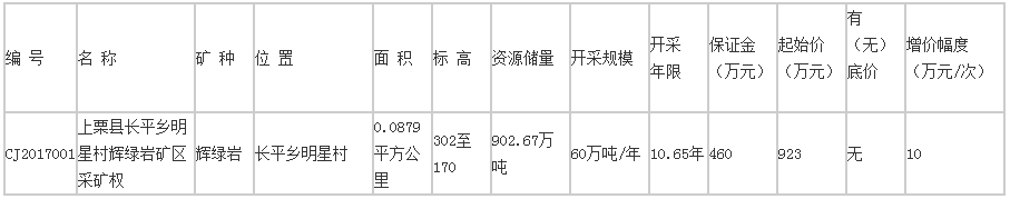 3、本公告中所有采礦權(quán)的報(bào)名、保證金交納、交易時(shí)間相同。