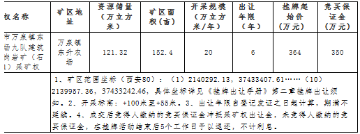 根據(jù)《中華人民共和國礦產(chǎn)資源法》、國土資源部《礦業(yè)權(quán)交易規(guī)則》及《海南省公共資源交易管理辦法》等相關(guān)法律法規(guī)的規(guī)定,瓊海市國土資源局決定以掛牌方式出讓瓊海市萬泉鎮(zhèn)東升農(nóng)場九隊(duì)建筑用花崗巖礦(石海01)采礦權(quán)。本次掛牌出讓由瓊海市國土資源局委托海南省土地儲(chǔ)備整理交易中心(海南省礦業(yè)權(quán)交易中心)具體承辦。現(xiàn)將有關(guān)事項(xiàng)公告如下: