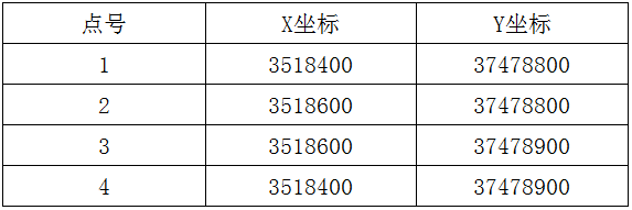 ?。ㄎ澹┑V區(qū)范圍:礦區(qū)面積0.02平方公里,開采標高625米-675米,拐點坐標如下(80西安坐標系):