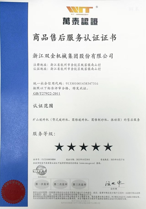 10月12-13日,專業(yè)售后服務(wù)評價體系審核組老師到雙金總部,對公司售后服務(wù)體系進行現(xiàn)場評審。經(jīng)審核,我公司售后服務(wù)體系運行有效,并獲得商品售后服務(wù)★★★★★認(rèn)證證書,標(biāo)志著我公司售后服務(wù)得到高度認(rèn)可。