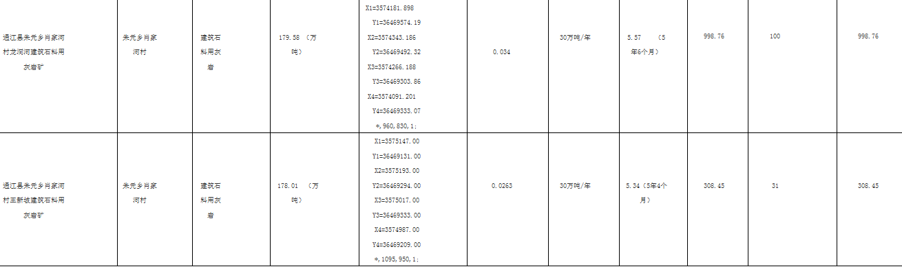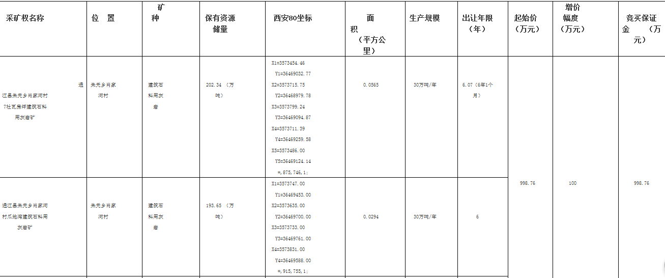 2017年度通江縣第一批采礦權(quán)掛牌出讓基本情況一覽表