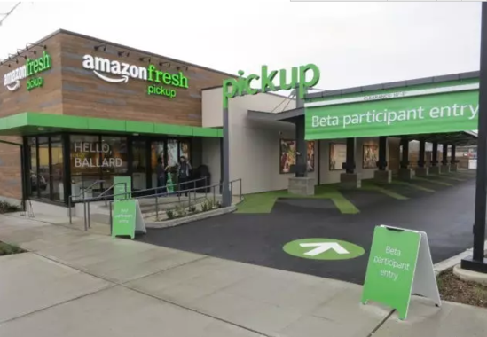 在“學習傳統(tǒng)零售”這方面,亞馬遜在今年3月份內測了自己的“生鮮提貨點(Amazon Fresh Pickup)”,整體邏輯類似于傳統(tǒng)店的“開車自提”。
