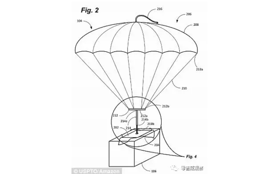 這個方案的核心是給商品裝上“降落傘”,這樣無人機不用落地,就可以實現商品配送,在一定程度上很好地節(jié)省了燃料成本。