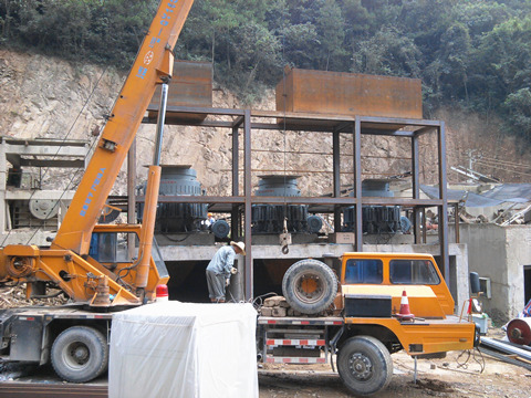 (圖為雙金工人在為客戶安裝圓錐破碎機)