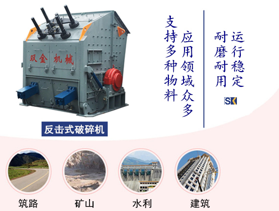 反擊破用于二道破碎,反擊破碎機的性價比高,除此之外,它還有多種優(yōu)勢,還是以雙金機械反擊破為例。首先,它采用比較先進工藝以及特別的結構設計,加上擊打式的工作原理,而且設備進料口較大,破碎比大,可對物料進行粗、中細碎等;其次,對用戶來說,成品料粒型很重要,它影響著日后的銷量,反擊破破碎出來的石料,出料效果好,粒型呈正方體,粒型美觀,利于銷售。最后,它的適用范圍較廣,常見的石灰石,或者質地較硬的鵝卵石、花崗巖等,破碎效果都比較好。
