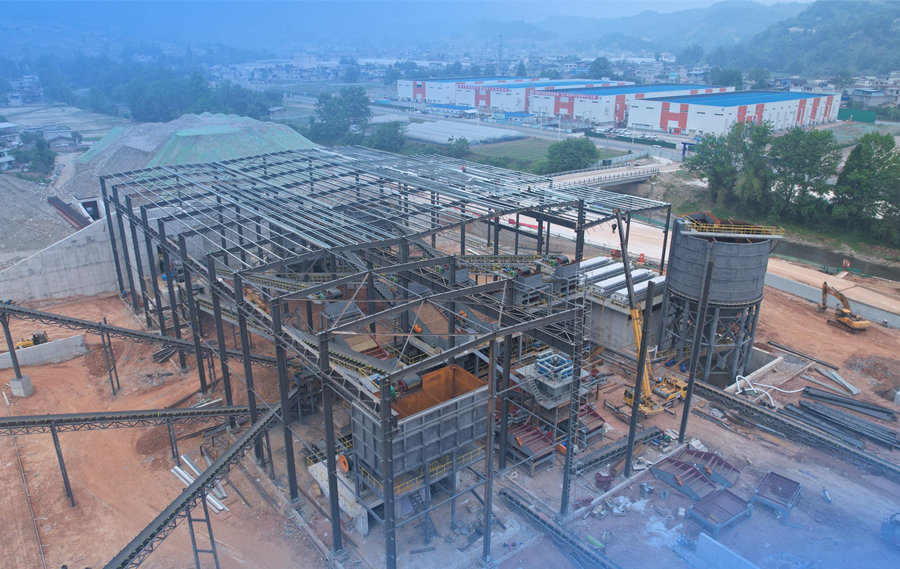 這里是四川雅安時(shí)產(chǎn)800噸復(fù)合型生產(chǎn)線施工現(xiàn)場(chǎng)。為什么叫復(fù)合型生產(chǎn)線呢?因?yàn)檫@個(gè)項(xiàng)目要同時(shí)破碎兩種原料,分別為夾砂鵝卵石和開(kāi)山石,開(kāi)山石的最大規(guī)格甚至高達(dá)1100mm。